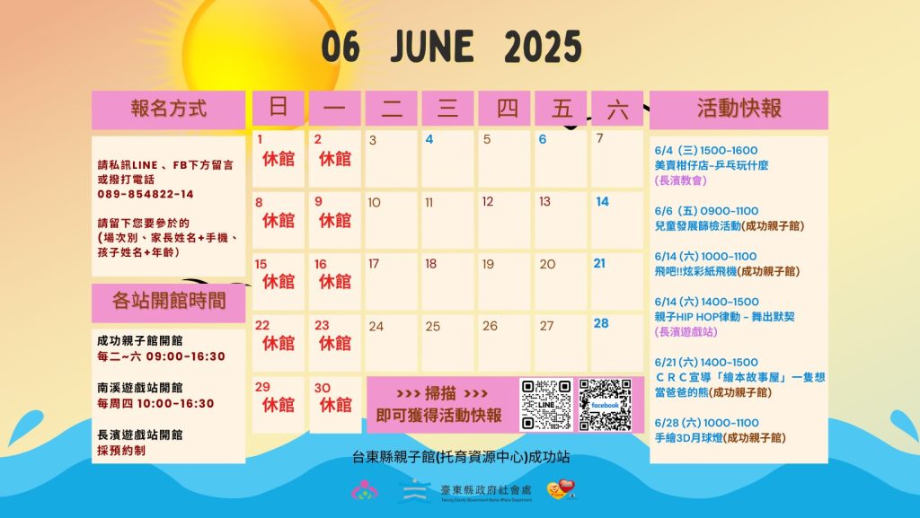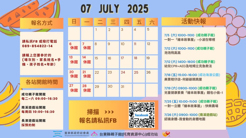 報名方式:請於成功親子館臉書私詢小編也可line@報名或電話報名