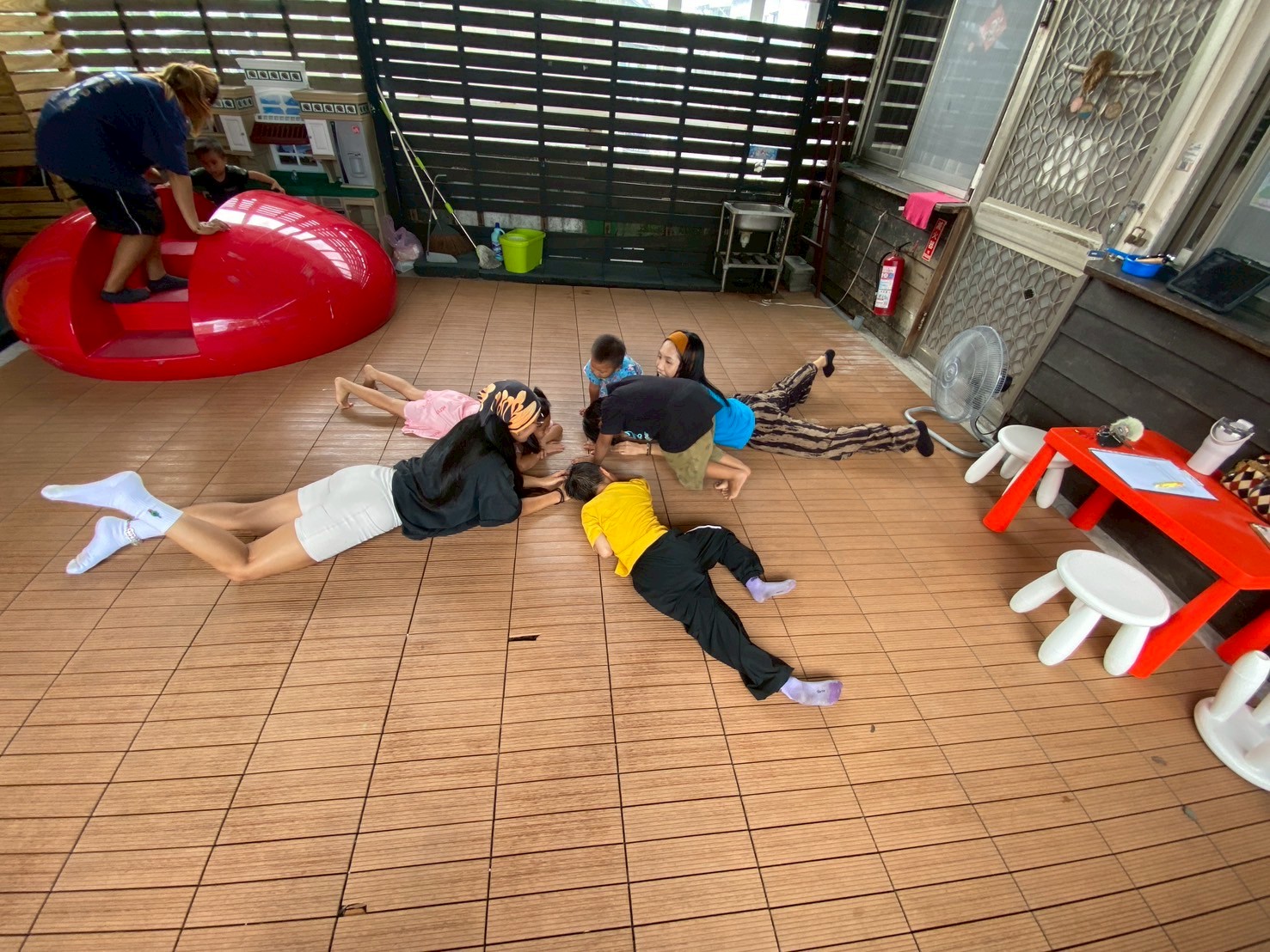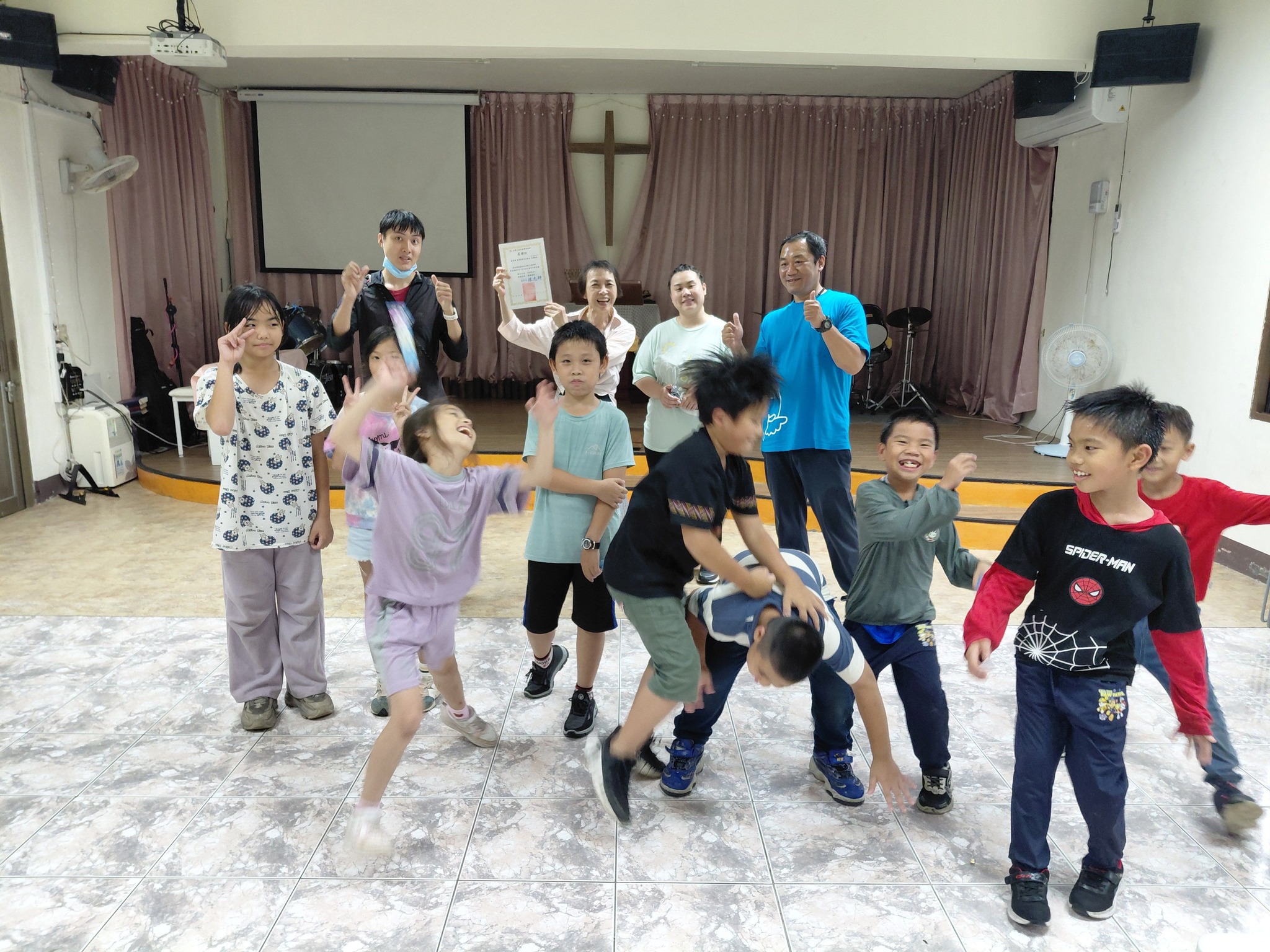 最後是團體合作關卡,孩子們模仿老師提供的動作照片,擺出一個個創意十足的姿勢,超適合當團體合照的Pose,以後拍照可以再擺一次