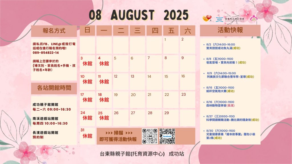 【成功親子館|8️⃣月活動行事曆】