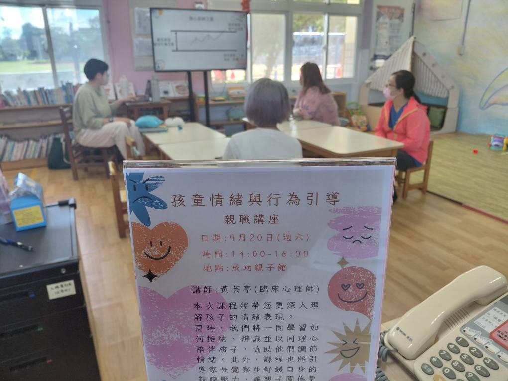 成功親子館於9月20日(六)下午2點至4點,舉辦「孩童情緒與行為引導」親職講座,特別邀請臨床心理師-黃芸亭擔任講師。活動吸引家長們熱情參與,現場氛圍溫馨且專注。