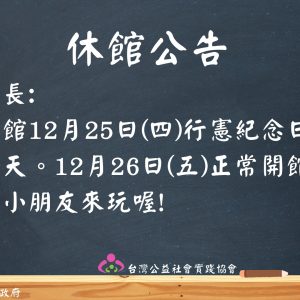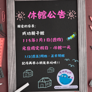 親愛的爸爸媽媽們大家好:本館將於 1/1(元旦)休館一日,讓 ...