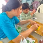 故事結束後,進入「福氣紅包拓印 DIY」時間。孩子在家長陪伴下,運用金漆將圖案拓印在紅包袋上,金色的福字圖樣一一浮現,象徵新年好運、平安與祝福。接著,孩子們再發揮創意,拿起水彩筆為紅包袋加上自己喜歡的顏色與圖案,每一個紅包都獨一無二,充滿童趣與想像力。
