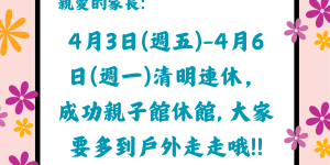 親愛的家長們,因應春假連假,成功親子館自115年2月15日( …
